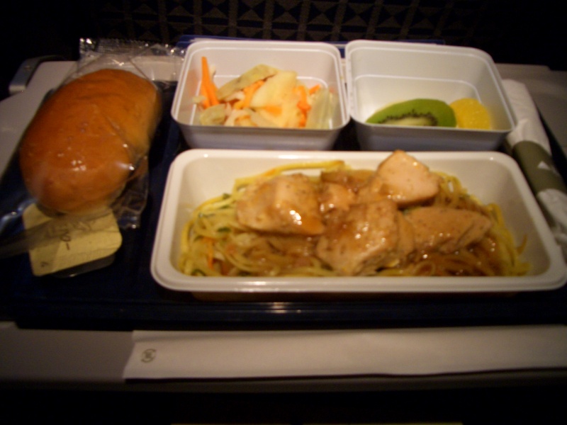 17:00 一回目の食事、バスタかチキンか結構美味しかった、ヌードルも付いてきた。