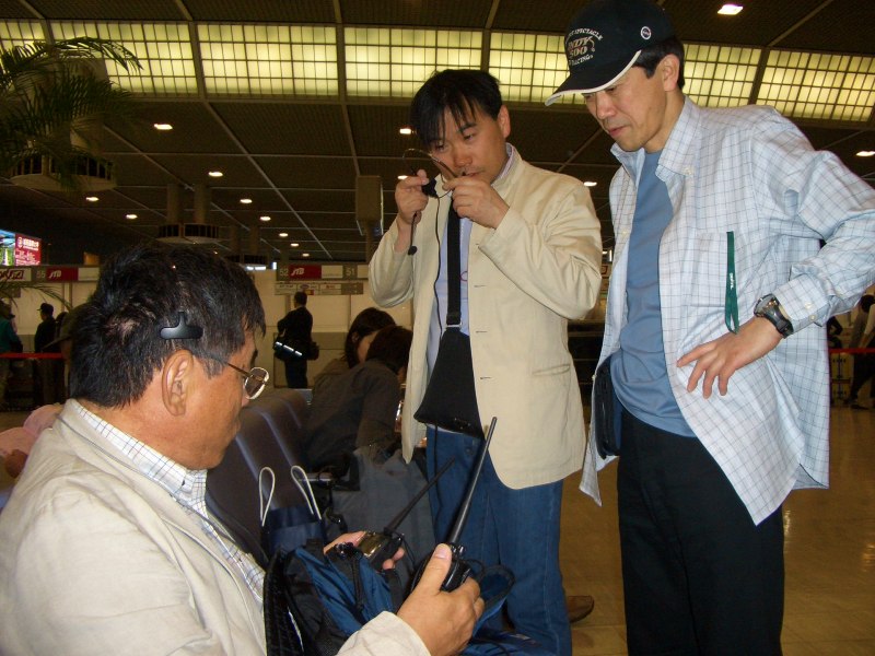 三階の出発ロビーに移動、東京から参加の木下さん発見、デイトンで使うD-STAR