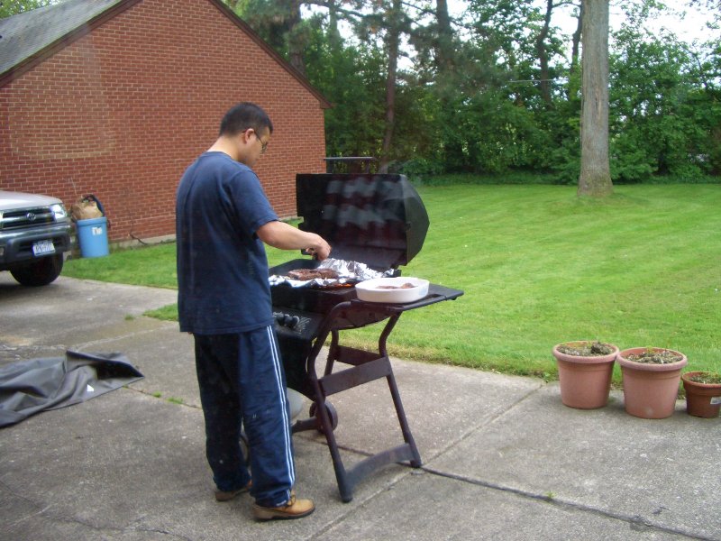 19時半頃 お庭でバーぺキューをダニーが焼いてくれる、美味しいワインと一緒に食べる
