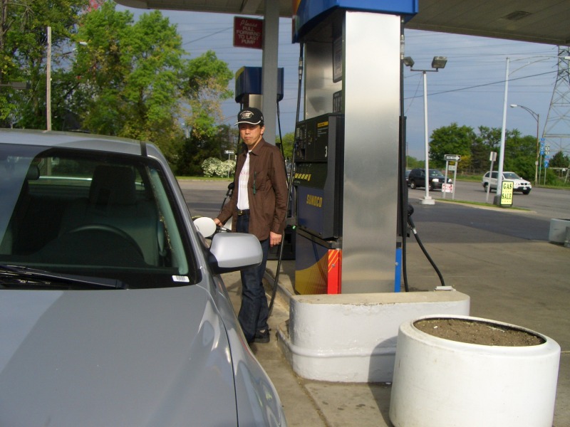 バッファローのフリーウェーの乗り口付近で燃料補給満タンにする。
