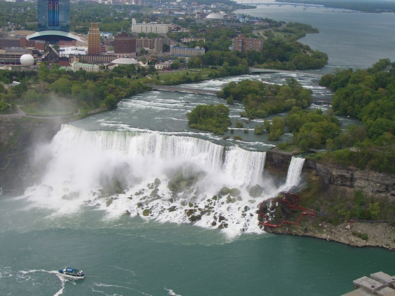 を経由して、自然な雰囲気のアメリカ滝を見学する。11ドルでまた、「maid of splash」