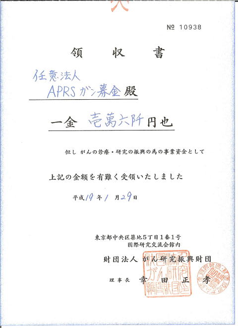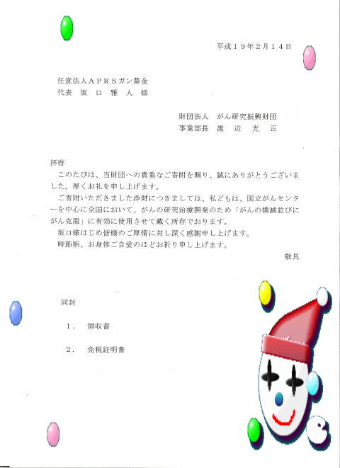 APRSがん募金 APRS がん募金ですが、この様な書が送られてきました。 アマチュア無線家として、非常に嬉しい事だと思います。 これからも、この活動を皆様のお力添えの上がんばってやっていこうと思います。