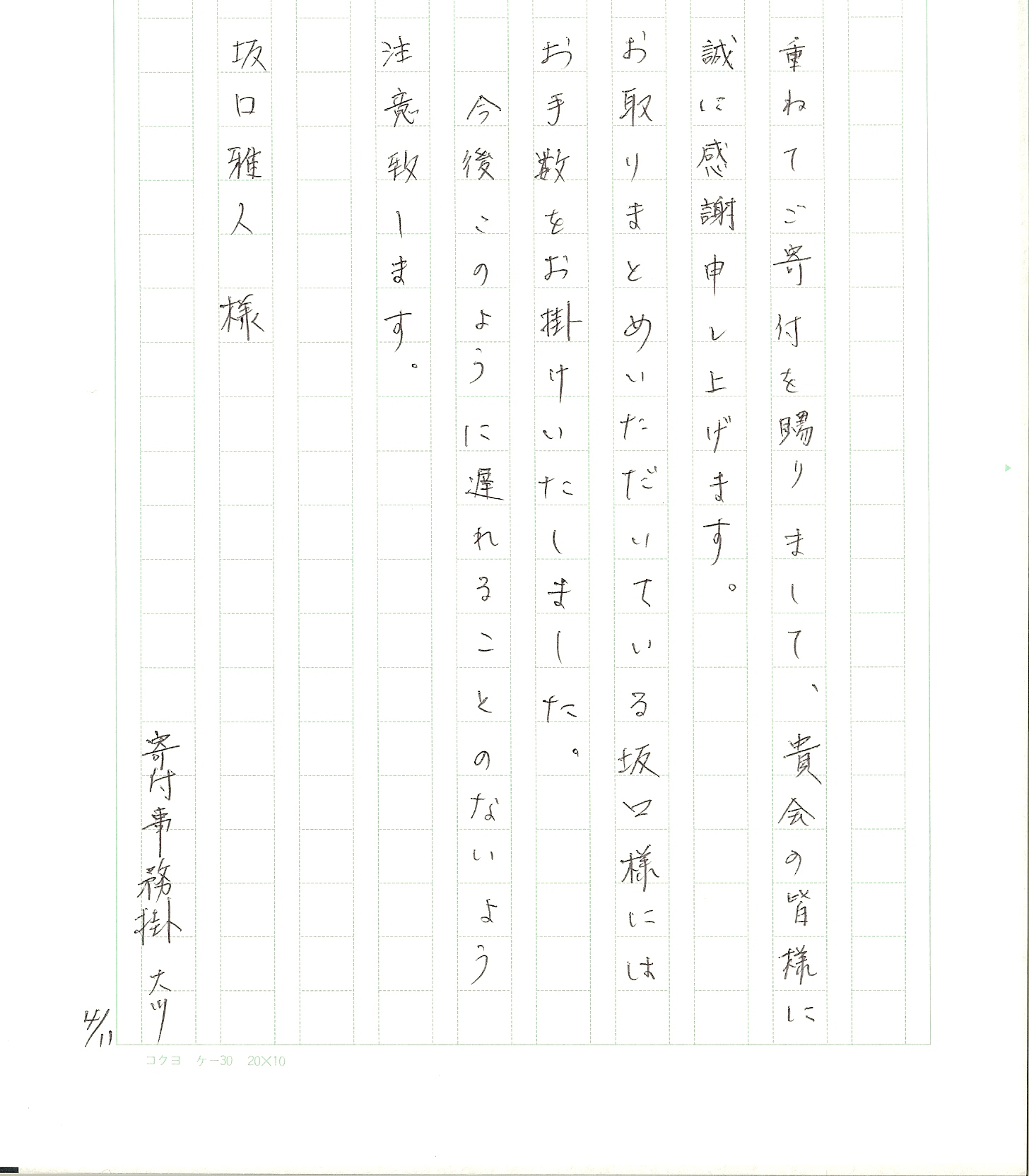 しかし、以下の謝罪文と技術上掲載はできませんが、ながーい文章にて送られていました。