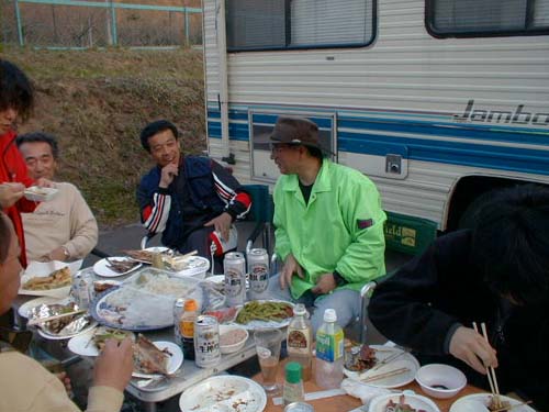 線質も最高でした。全員モーターホームにもどり、昼食開始、その後ゆっくりチャチャの散歩、