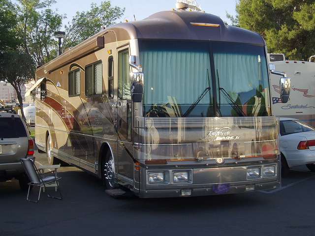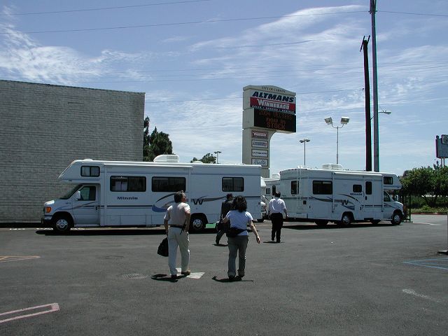 ★新車、32フィートのRVの感触 13年ぶりのカリフォルニアは、昔と変わらす゛、毎日がブルースカイで、札幌の真夏の天候。私達夫婦と今回ご一緒した、同じキャンパーズ連盟のJL8JFOの嶋田さん夫婦、出発前から意気統合して、準備を進めました。 今回は、以前2度ほどレンタルして最近は、JTBツアーなどでもおなじみのEL MONTE RV CENTERはあえて使わず、ロサンジェルス空港から車で南に20分のCarson cityに有るウイネーベゴ専門ディラーのALTMAN'Sで ロスのお友達のお勧めも有り、新車RVを借りる事にしました。 ★レンタルするのに3時間 予約はして有ったが、車に会えるまで、モーターホームの使い方のビデオを見せられたり、契約書の作成、インターネット上での保険の加入などなど、2時間ほど、かかりました。担当車は、フレンドリーでとにかくのんびりムードです寝具、食器、コヒーメーカー、タオル、などを揃えて積んだ後、こんどは、モーターホームのインテリア、エクステリアの詳細な説明をはじめました。 スタートできたのは、夕方4時頃に成りました。覚悟はしていましたがその日はスーパーの買出しとHFで無線をするために、梯子にアンテナを取り付ける事で一日は終わると思っていましたので、予定通りの行動でした。この夜は、広々とした、木村社長のハムショップの駐車場横に電源をもらい、パークさせてもらいました。 翌日は、車を借りてロスのユニバーサルスタジオの一日ツアーにでかけました。昔から見るとアトラクションが増えて、土曜日た゜ったので、大勢の人で賑わっていましたが、大阪のユニバーサルスタジオとの大きな違いは、施設自体が現在映画を撮影している場所に有ると言うことです。ツアーバスがスタジオ内を走り、通りには億はくだらない、バスタイプのRVが無道さに路上に駐車して有りました。