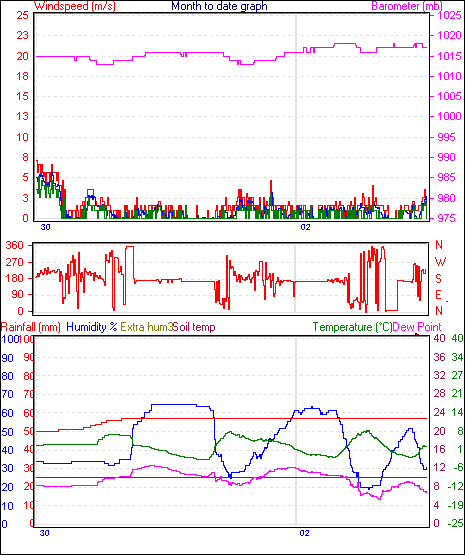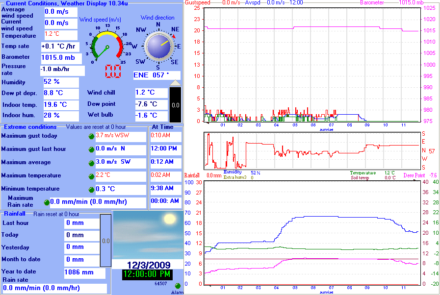 Maximum Gust (since midnight) | 5.1 m/s at: 3:30 PM | Maximum 1 minute average (since midnight) | 3.7 m/s at: 3:33 PM |