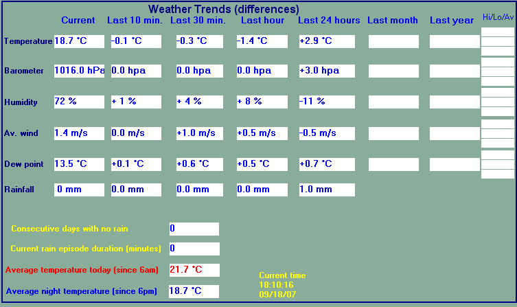 LAST READING AT TIME: 18:10 pm DATE: September 18 2007 ,Time of next update: 18:15 pm | |||