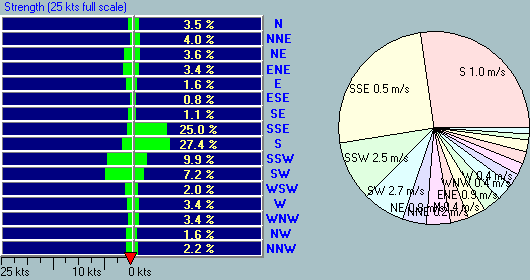 Maximum windspeed 7.2 m/s from 175° on day 03 at time 13:15